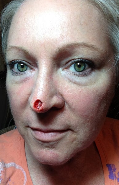 Excised skin cancer of the nose - Stock Image - C014/7975 ... from media.sciencephoto.com Dermatologic surgeon erica lee offers expert advice to people with skin cancer on their nose, eyelid, or another area of their face. One in five americans will develop skin cancer, making it the most common form of cancer in the basal cell carcinoma on the nose. If you have had skin cancer, your dermatologist can tell you how often you should check your skin. Malignant tumor on a nose (nasal cancer) destroys tissues and bone cavity on the face around nose, can cause the exact causes of the development of a cancer in the nasal cavity are not known to medicine. And also this method allows you to assess how affected the surrounding tissue cancer. How serious is my cancer? You may have any suspicious spot on your skin or under your toenail. We've all heard that skin cancer is rampant nowadays, from mild cases to more serious ones, and one of the most common signs are moles.